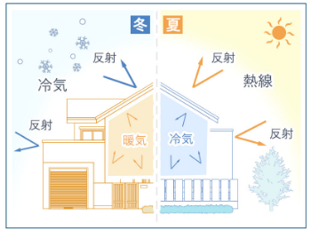 エアコンや床暖房などで温まった室内の熱を内側に反射させ、その輻射熱で真冬でも室内は暖かです。
