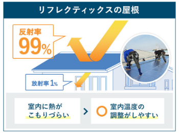 所定の遮熱⼯法によって、冷房と暖房の両⽅で効果が上がり