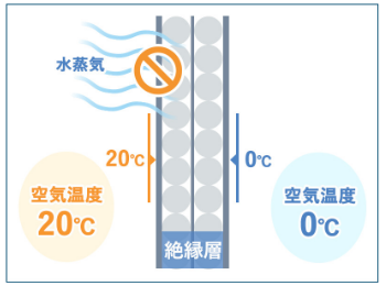 物体表裏の温度差によって生じる結露ですが、2層のエアーキャップがあることで緩やかな温度変化となり、結露発生が抑制できます。